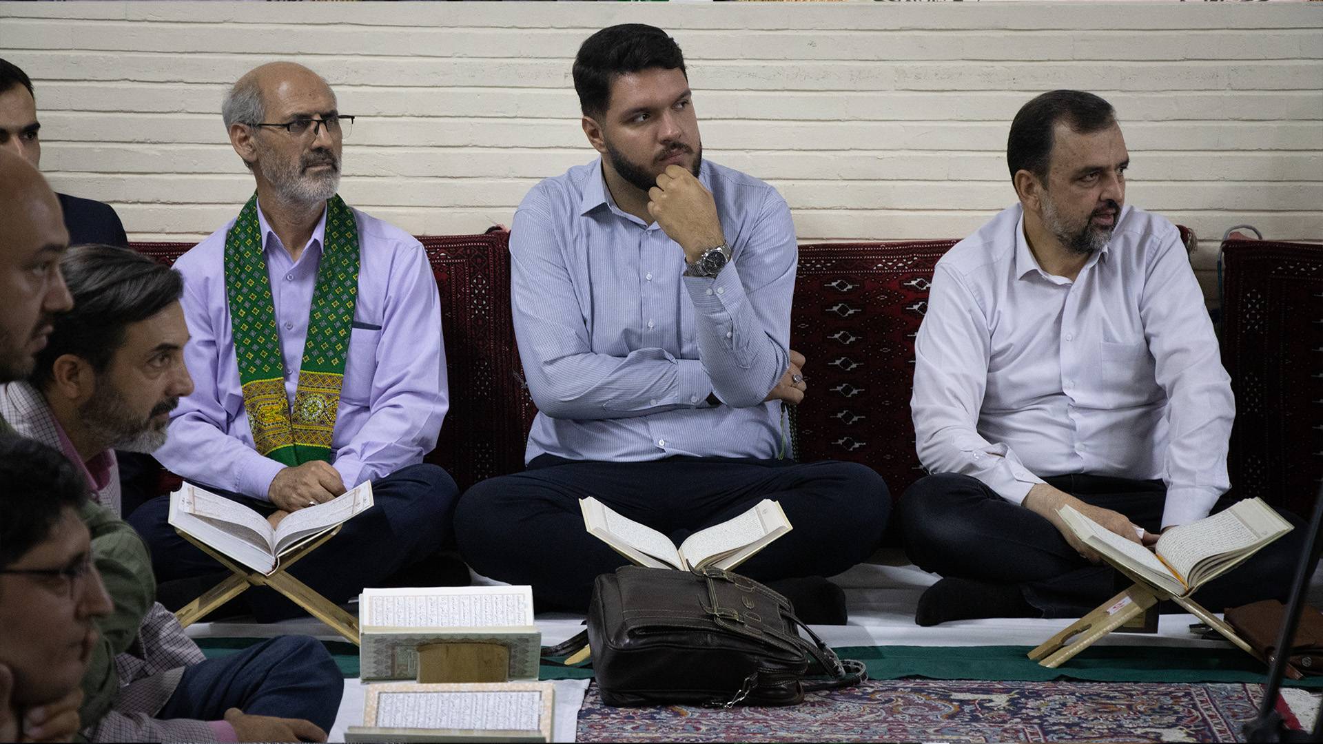 این جلسه که بهصورت ماهیانه در دفتر نماینده ولیفقیه برگزار میشود، با حضور قاریان و حافظان ممتاز استان البرز همراه بود. در این محفل معنوی، قاریان برجسته و میهمان ویژه، سید صادق مسلمی از استان مازندران و قاری بین المللی، احمد ابوالقاسمی به تلاوت آیاتی از قرآن کریم پرداختند و فضای جلسه را با نوای قرآن معطر کردند.همزمان با تلاوت آیات قرآن در این محفل قرآنی، جمعی از کاتبان وحی استان البرز، جلوهای از ارادت خویش را با نگارش آیات الهی بر صفحهای از ایمان و هنر به نمایش گذاشتند.