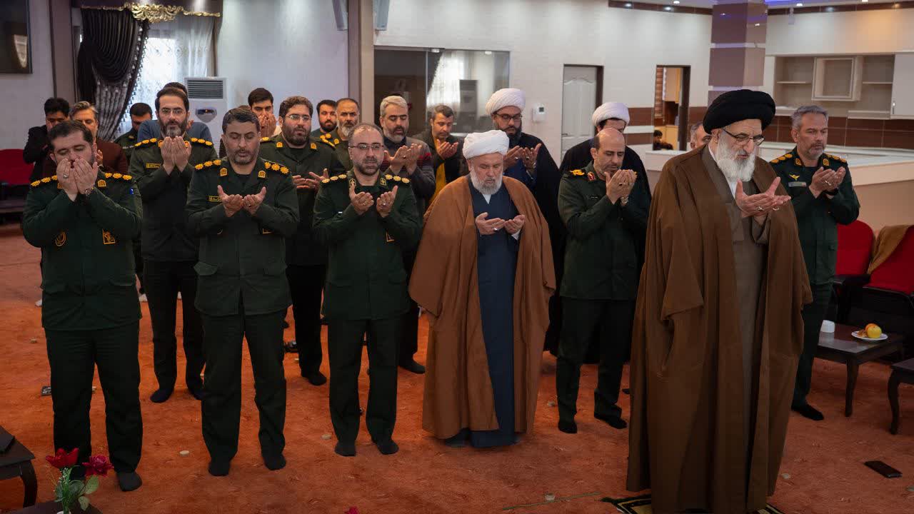 دیدار و گفتوگو آیت الله حسینی همدانی، نماینده ولی فقیه در استان البرز با سردار حیدرنیا، فرمانده سپاه امام حسن مجتبی (ع)، حجتالاسلام والمسلمین نعیمی، مسئول نمایندگی ولیفقیه در سپاه استان و جمعی از پاسداران؛ مورخ ۱۴۰۴/۱۱/۰۴