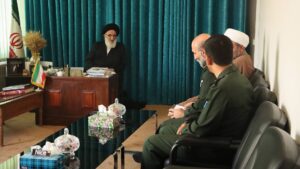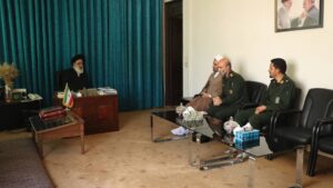 دیدار و گفتگو سرهنگ حاج علی شعبانی فرمانده جدید سپاه ناحیه امام حسین (علیه السلام) با آیت الله حسینی همدانی، نماینده ولی فقیه در استان البرز؛ مورخ ۱۴۰۴/۰۵/۱۲