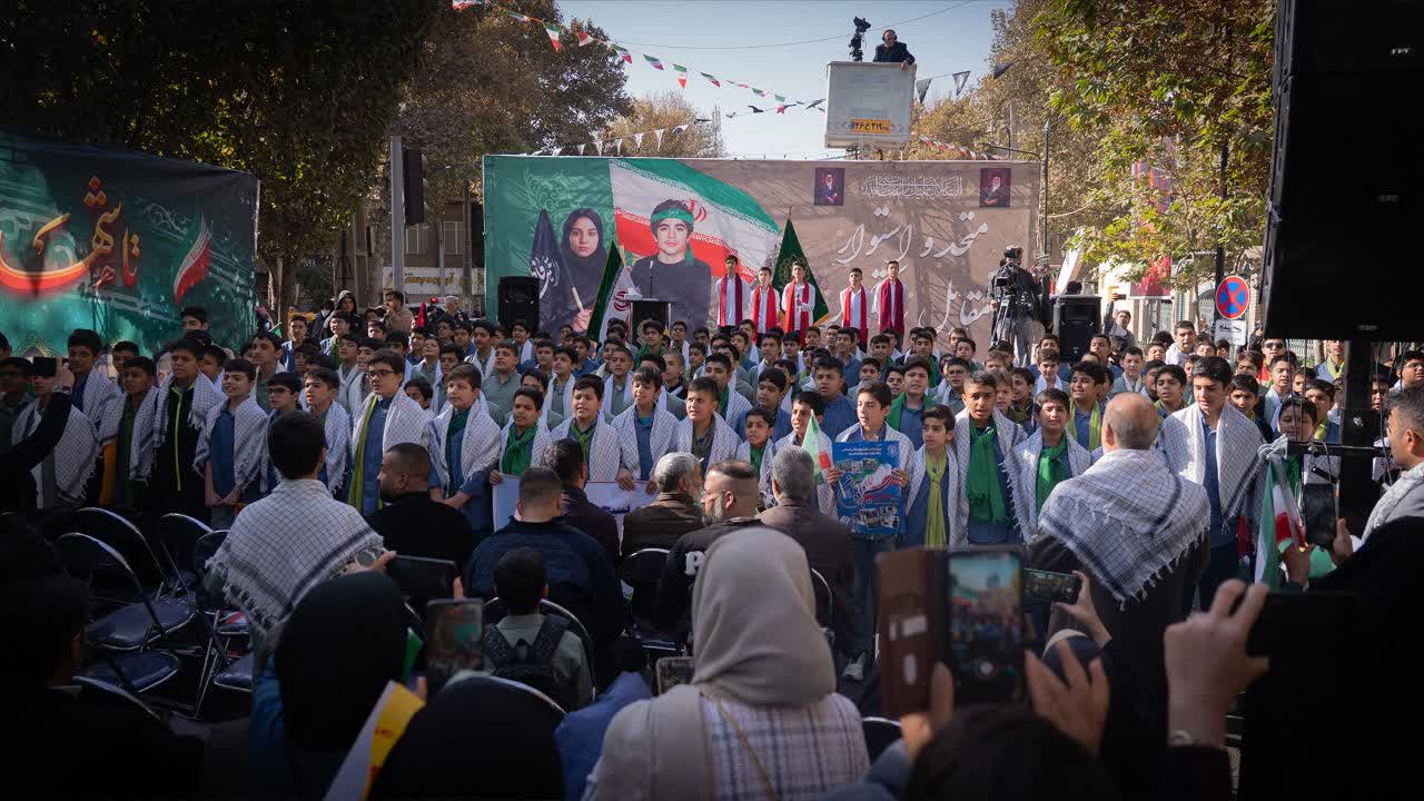 قابهایی از حضور پرشور دانش آموزان و اقشار مختلف مردم کرج در راهپیمایی و بزرگداشت یوم الله ۱۳ آبان «روز ملی مبارزه با استکبار جهانی»؛ مورخ ۱۴۰۴/۰۸/۱۳