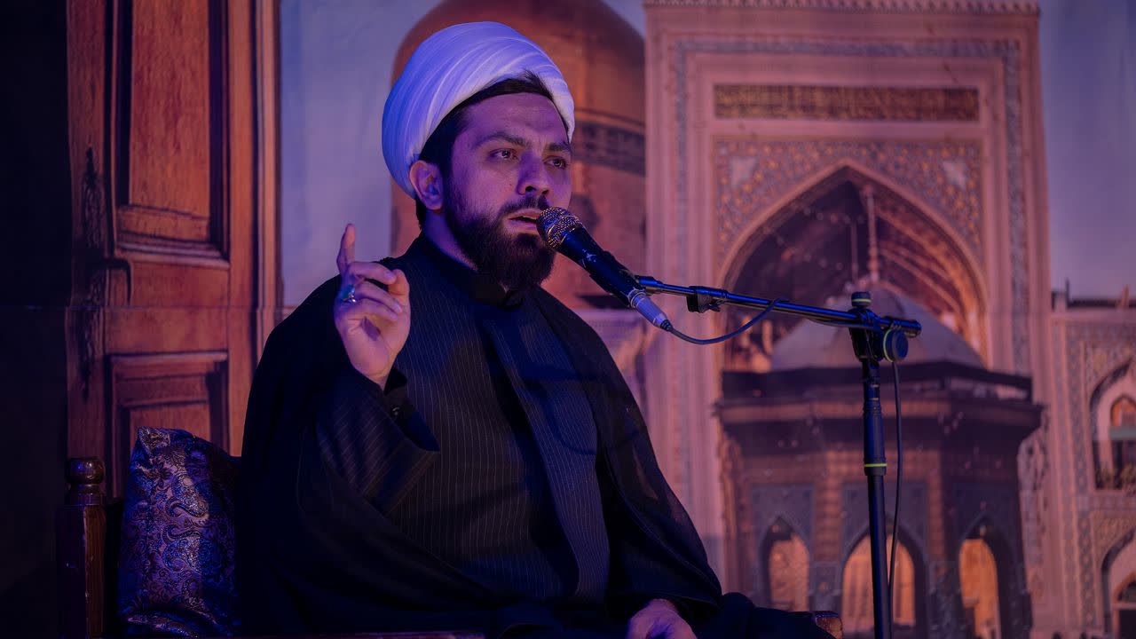 قابهای از برگزاری هشتمین یادواره جوان مومن انقلابی با محوریت شهید مدافع حرم حجت الاسلام والمسلمین میرزا محمود تقیپور و یادبود شهیدان حجج الاسلام مصطفی ردانی پور و امین عباس رشید و شهدای بسیج مسجد صاحب الزمان (عج) تهران؛ مورخ ۱۴۰۴/۰۹/۰۴