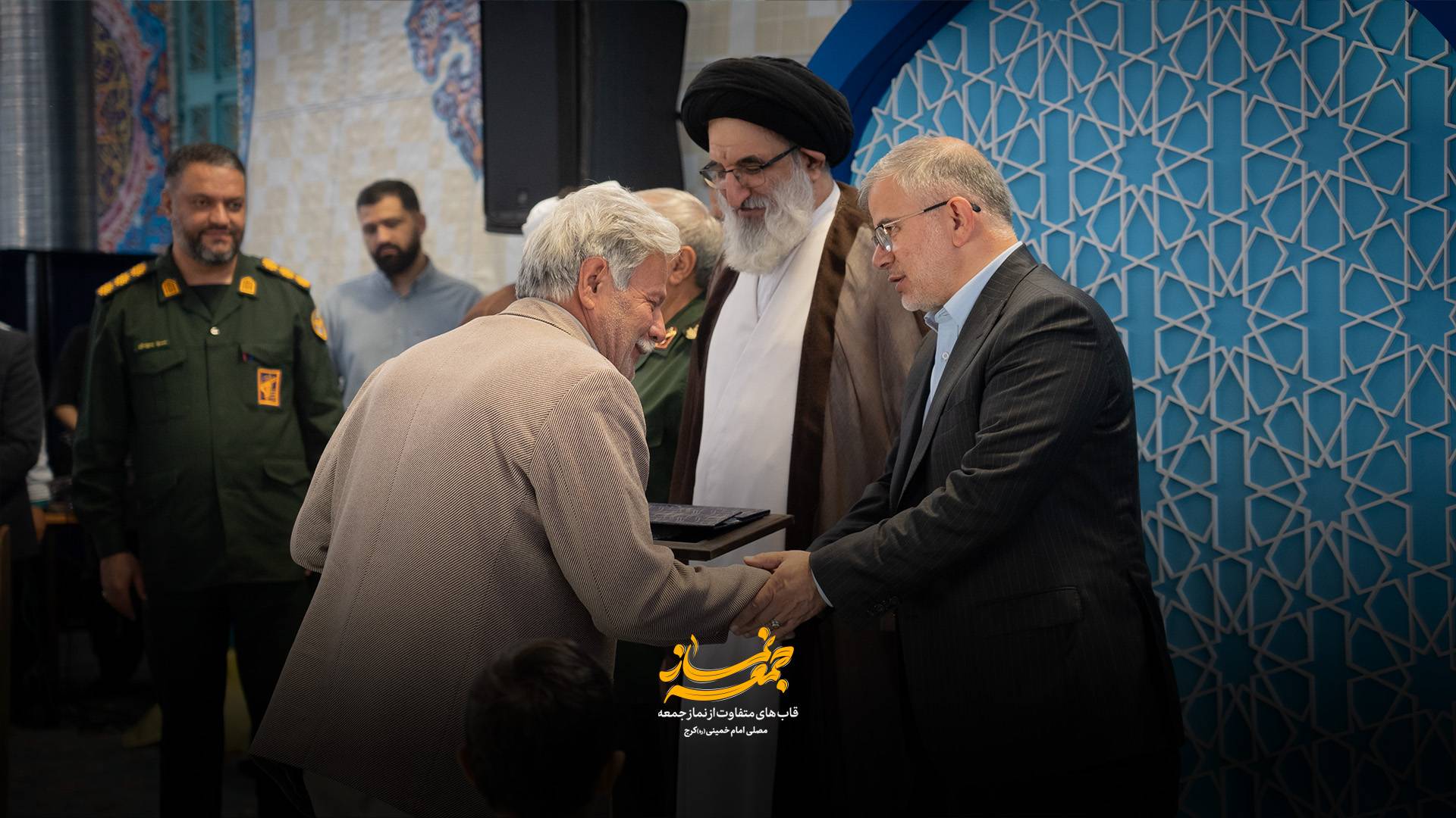 قابهای متفاوت از نماز جمعه امروز کرج به امامت حضرت آیت الله حسینی همدانی قابهای تجلیل از پیشکسوتان دفاع مقدس و مقاومت استان البرز در ارتش جمهوری اسلامی, سپاه، بسیج و فراجای استان البرز به مناسبت هفته دفاع مقدس مصلی امام خمینی(ره) کرج مورخ ۱۴۰۴/۰۷/۰۴