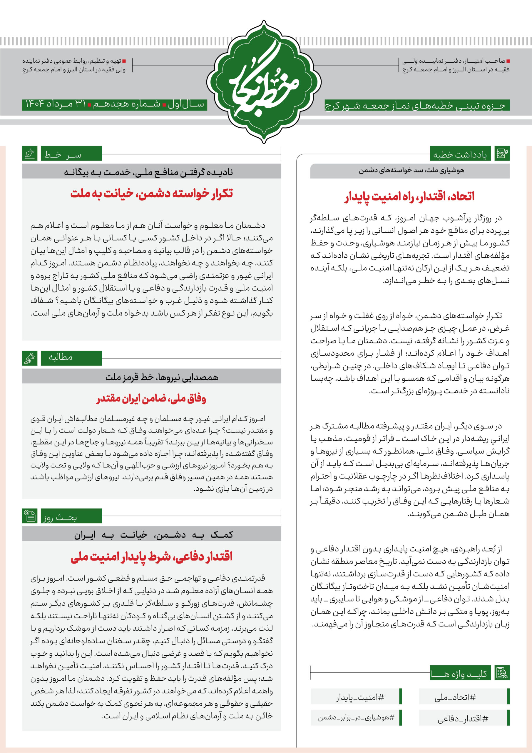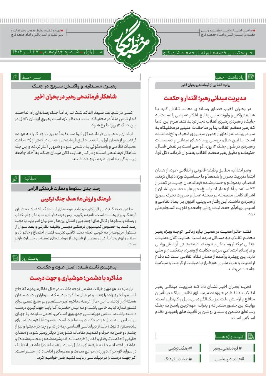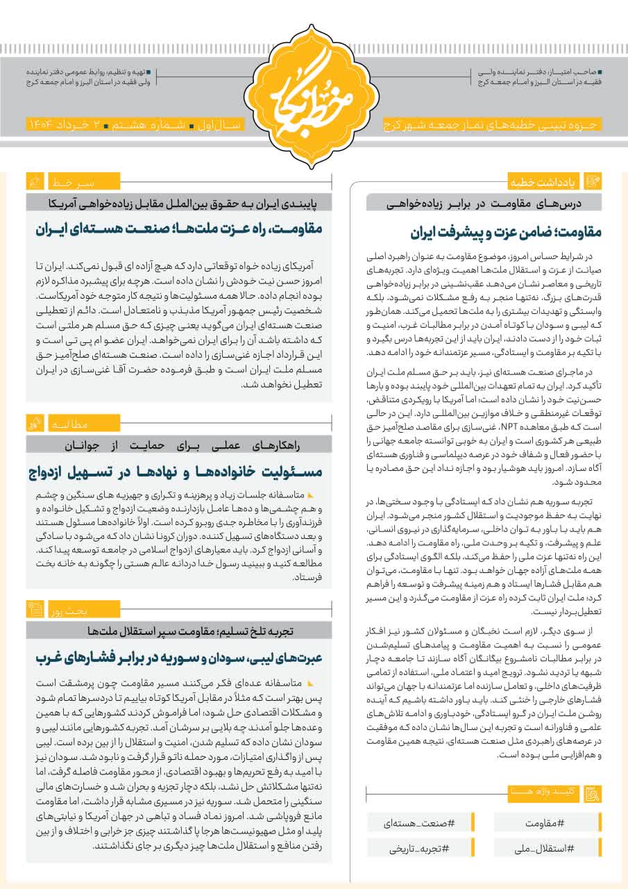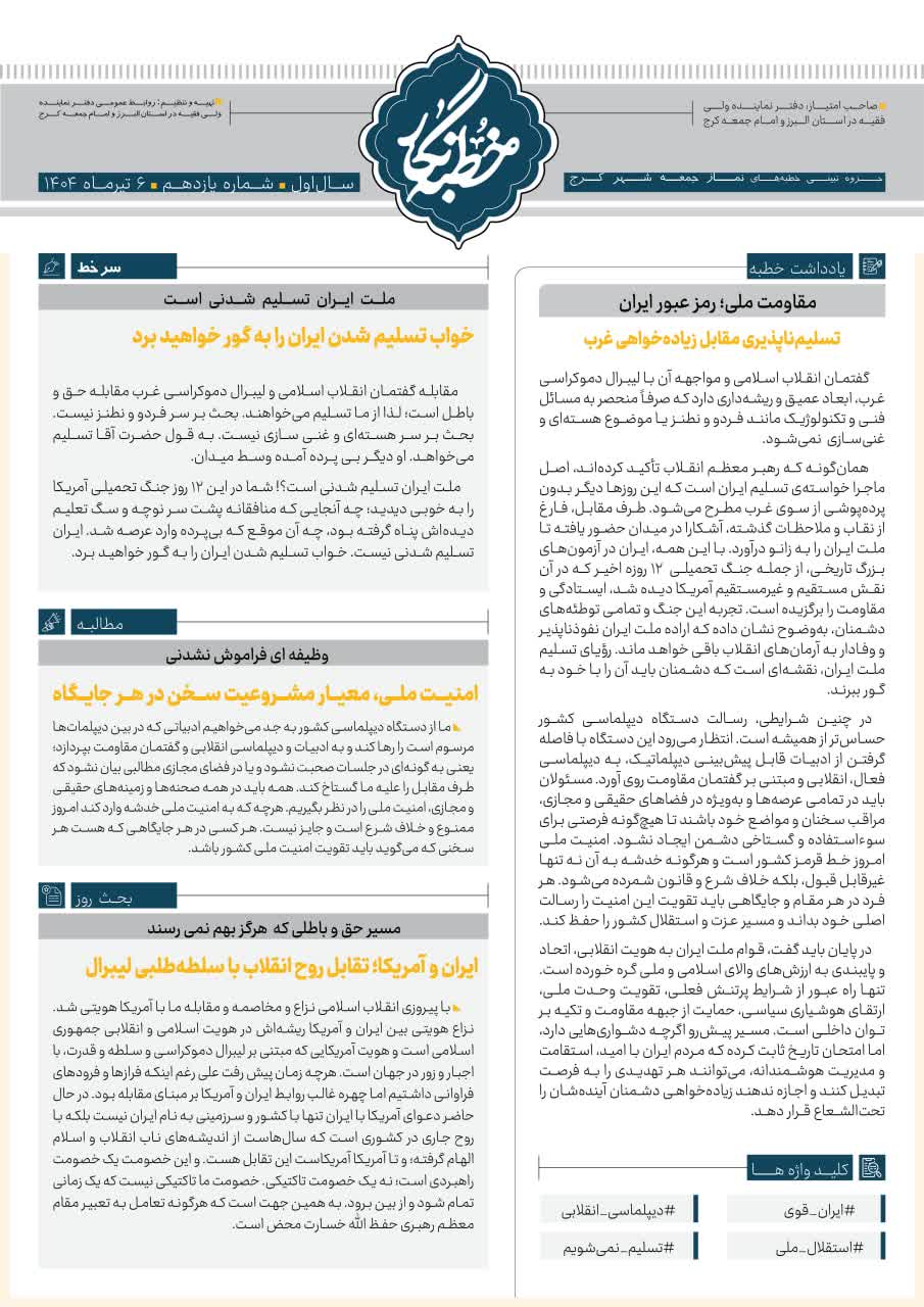 سیزدهمین شماره از خطبه نگار نماز جمعه کرج