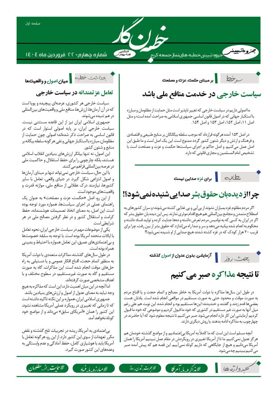 چهارمین شماره خطبه نگار