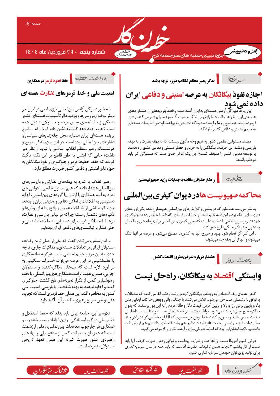 پنجمین شماره خطبه نگار