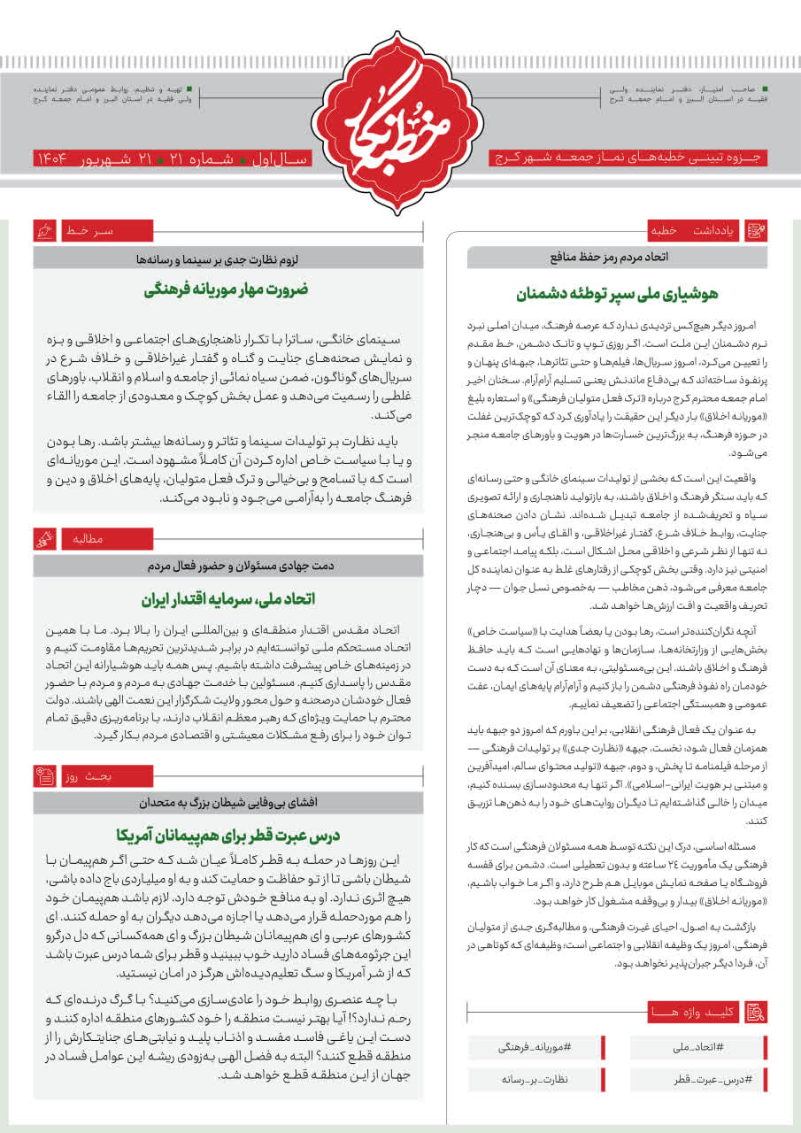 بیست و یکمین شماره خطبه نگار
