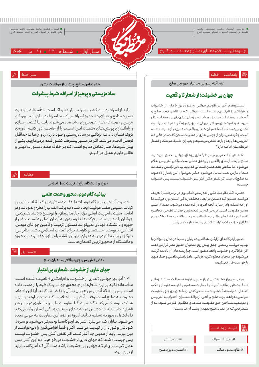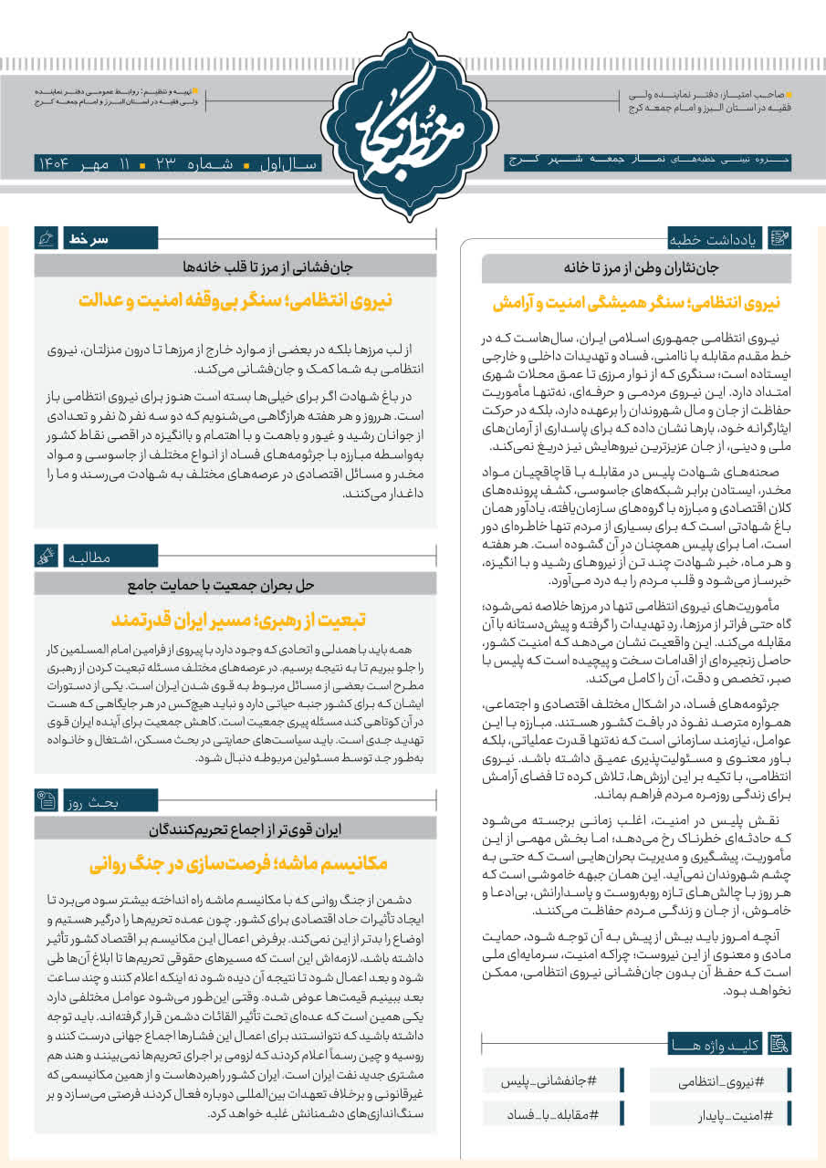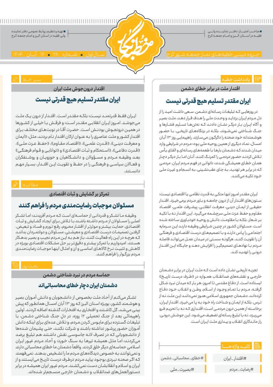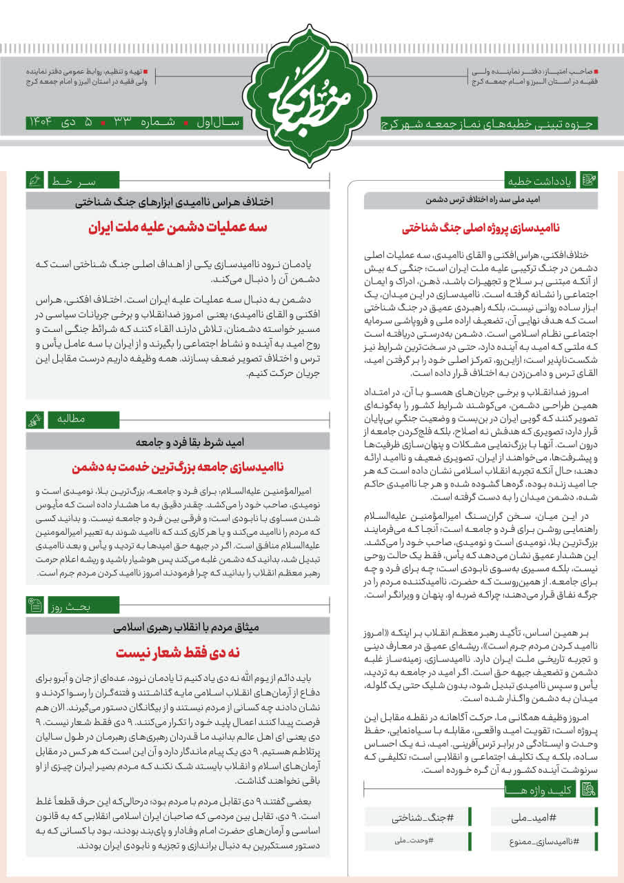 سیزدهمین شماره از خطبه نگار نماز جمعه کرج